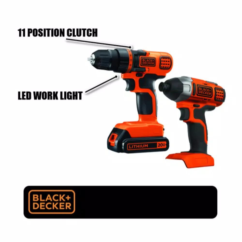 The BLACK+DECKER BD2KITCDDI includes a Drill/Driver and Impact Driver. This value filled combo kit is ideal for most drilling and fastening applications. Keyless chucks allow for quick accessory changes.