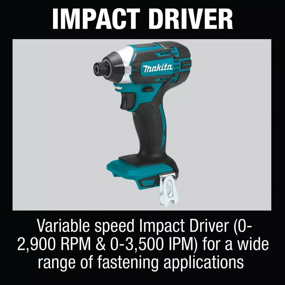 Makita is a leader in cordless technology, and the XT614SX1 Combo Kit provides six tools showcasing the unique 18V LXT technology. This 6-Piece Combo Kit is built for the pro-user who requires a wide range of best-in-class cordless solutions for drilling, driving, fastening, cutting, and lighting. The XT614SX1 includes a ยฝ In. driver-drill with two speed settings, an impact driver with variable speeds that delivers 1,460 in.lbs. of Max Torque, a 6-1/2 In. circular saw with a full 3,700 RPM for faster cutting, a vacuum with strong suction power for faster, efficient cleaning, and a high-luminance L.E.D. flashlight. Itโs a one-stop solution for a wide range of applications. The kit includes two 18V LXT 3.0Ah batteries and the efficient Rapid Optimum Charger. Itโs part of Makitaโs expanding 18V LXT System, the worldโs largest cordless tool system powered by 18V lithium-ion slide-style batteries. Makita 18V LXT Batteries have the fastest charge times in their categories, so they spend more time working and less time sitting on the charger. For improved tool performance and extended battery life, Makita created Star Protection Computer Controls. Star Protection is communication technology that allows the Star Protection-equipped tool and battery to exchange data in real time and monitor conditions during use to protect against overloading, over-discharging and overheating.