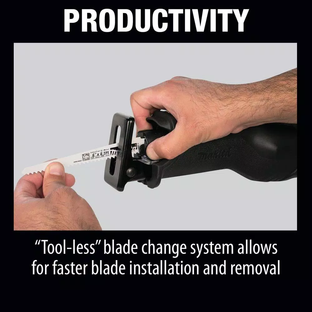 - Reciprocating saw provides 0-2,800 SPM and features tool less blade change; weighs only 8.1 lbs. with battery
