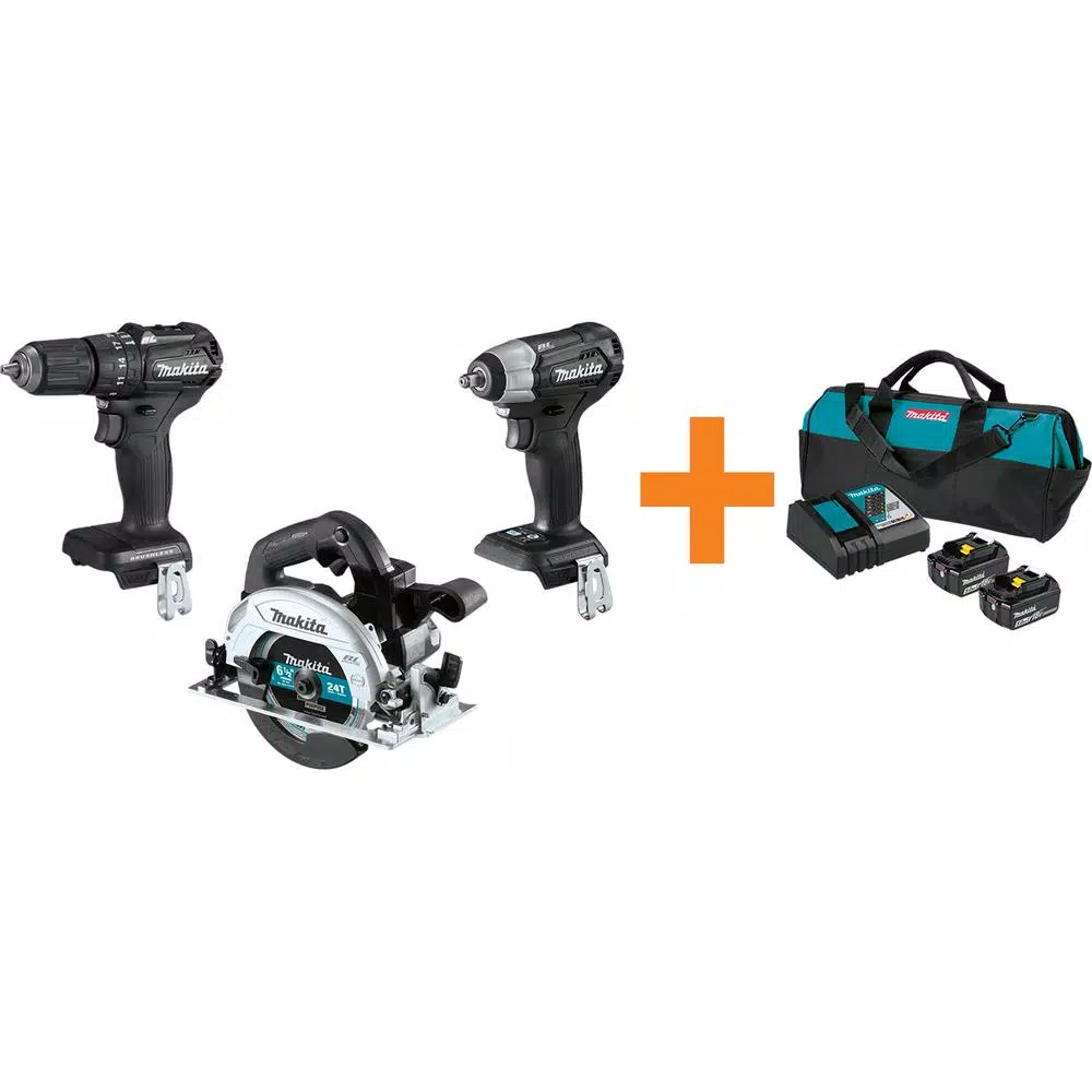 Do more with less. The Makita 18-Volt LXT Lithium-Ion Sub-Compact Brushless Cordless Hammer Driver-Drill (model XPH11ZB, tool only, battery sold separately) is an ultra-compact drilling and driving solution with significantly less weight. The 18-Volt sub-compact hammer driver-drill is part of a new class of compact, with the size and weight of lower voltage tools but with the performance, power and compatibility of 18-Volt. The expansive breadth-of-line of the Makita 18-Volt LXT series means an 18-Volt battery from any LXT tool will power the 18-Volt sub-compact hammer driver-drill. The XPH11ZB has an efficient brushless motor with 2-speed settings and dual LED lights to illuminate the work area. At only 6-3/8 in. and 2.8 lbs. (with battery, sold separately) it is an ultra-compact drilling and driving solution with superior comfort and handling. For improved tool performance and extended battery life, Makita created star protection computer controls. This promotional sku also includes the XRJ07ZB 18V LXT Lithium-Ion Sub-Compact Brushless Cordless Recipro Saw, Tool Only, XSH04ZB 18V LXT Lithium-Ion Sub-Compact Brushless Cordless 6-1/2 In. Circular Saw, Tool Only and comes with a bonus BL1850BDC2X 18V LXT Lithium-Ion Battery and Rapid Optimum Charger Starter Pack (5.0Ah).