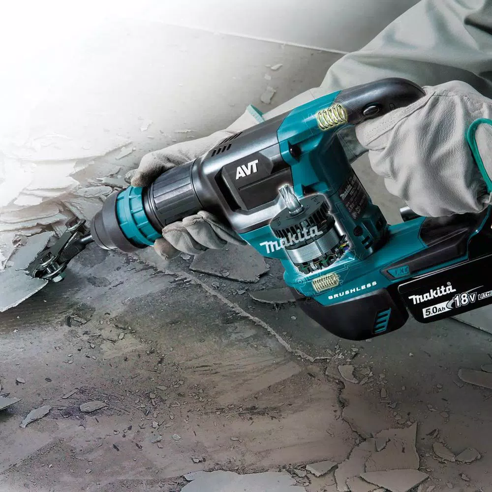The Makita 18V LXT Brushless Cordless AVT Power Scraper Kit (XKH01TJ) is a versatile tool for scraping, light chipping, scaling, and chiseling. It features a variable impact speed of 0 β 3,200 BPM and 2.2 ft.lbs. of impact energy to handle the most demanding applications. The power scraper has 12 bit angle settings, allowing the bit to be set at different positions for operating convenience, and it accepts SDS bits. Other features include an electric brake, constant speed control, variable speed dial, built-in L.E.D. light, and a retractable tool hook. For added durability in harsh job site conditions, Extreme Protection Technology (XPT) is engineered for improved dust and water resistance. For reduced vibration, itβs equipped with Anti-Vibration Technology (AVT). More than just a padded handle, AVT is an internal counterbalance that uses air pressure to move counterweight pistons in the opposite direction of the drive piston to actively reduce vibration. It is ideal for a range of trades including general contractors, concrete contractors, flooring contractors, masonry restoration contractors, and maintenance operations. Itβs part of Makitaβs expanding 18V LXT System, the worldβs largest cordless tool system powered by 18V lithium-ion slide-style batteries. Makita 18V LXT Lithium-Ion Batteries have the fastest charge times in their categories, so they spend more time working and less time sitting on the charger.