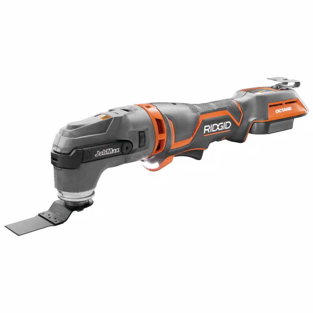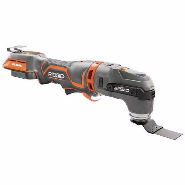 RIDGID introduces the 18-Volt OCTANE Cordless Brushless JobMax Multi-Tool with Tool-Free Head. The 18-Volt OCTANE Brushless JobMax Multi-Tool features high performance brushless motors and advanced electronics that provide best-in-class power and intelligence. While providing increased performance with all RIDGID 18-volt batteries, OCTANEย tools provide maximum performance in high demand applications when paired with OCTANEย batteriesย (batteries not included). Paired with an OCTANE battery (battery not included), this tool gives longer runtime and a longer tool life. With registration, this tool is backed by the Industryโs Only Lifetime Service Agreement: FREE Parts. FREE Service. For LIFE. The OCTANE Brushless JobMax Multi-Tool with Tool-Free Head includes the JobMax Power Base, a Tool-Free Multi-Tool Head, a 1-1/8 in. wood cutting blade, a segment blade, a sanding pad, five sandpaper pieces, two drive gear covers, a Universal Multi-Tool Adaptor, a belt hook with screws, and an operatorโs manual. Battery and charger sold separately.